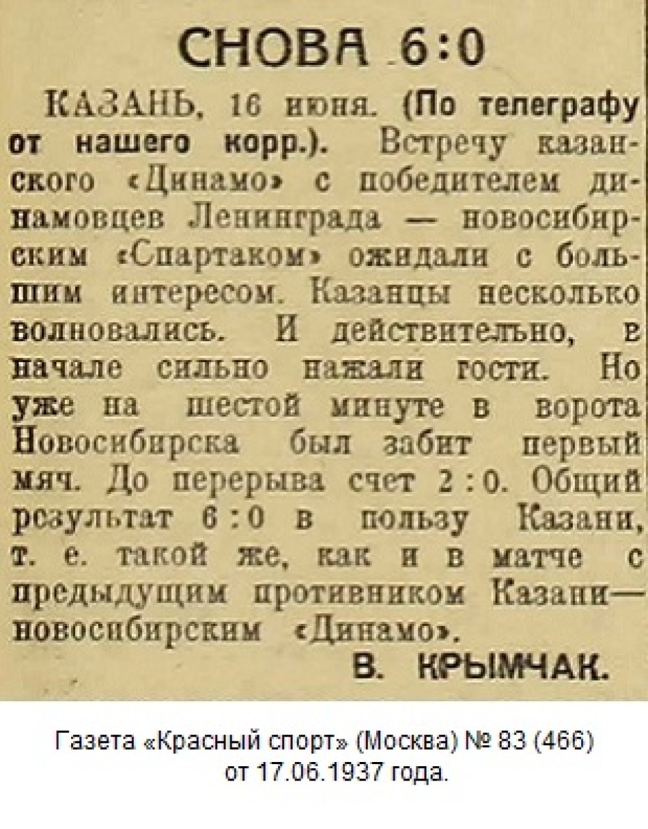 Вчера «Динамо» Казань встречалась в матче на Кубок СССР с командой «Спартак» (Новосибирск). Со счетом 6:0 игру выиграли казанцы, и вышли в пятый круг розыгрыша.