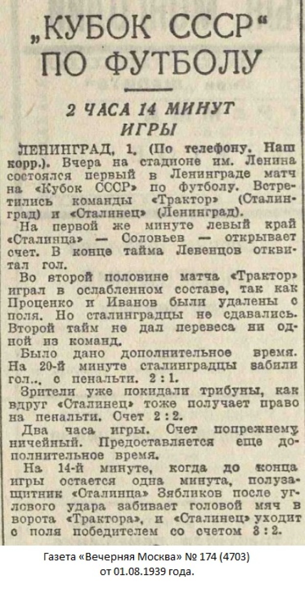 «Сталинец» Ленинград - «Трактор» Сталинград - 3:2
