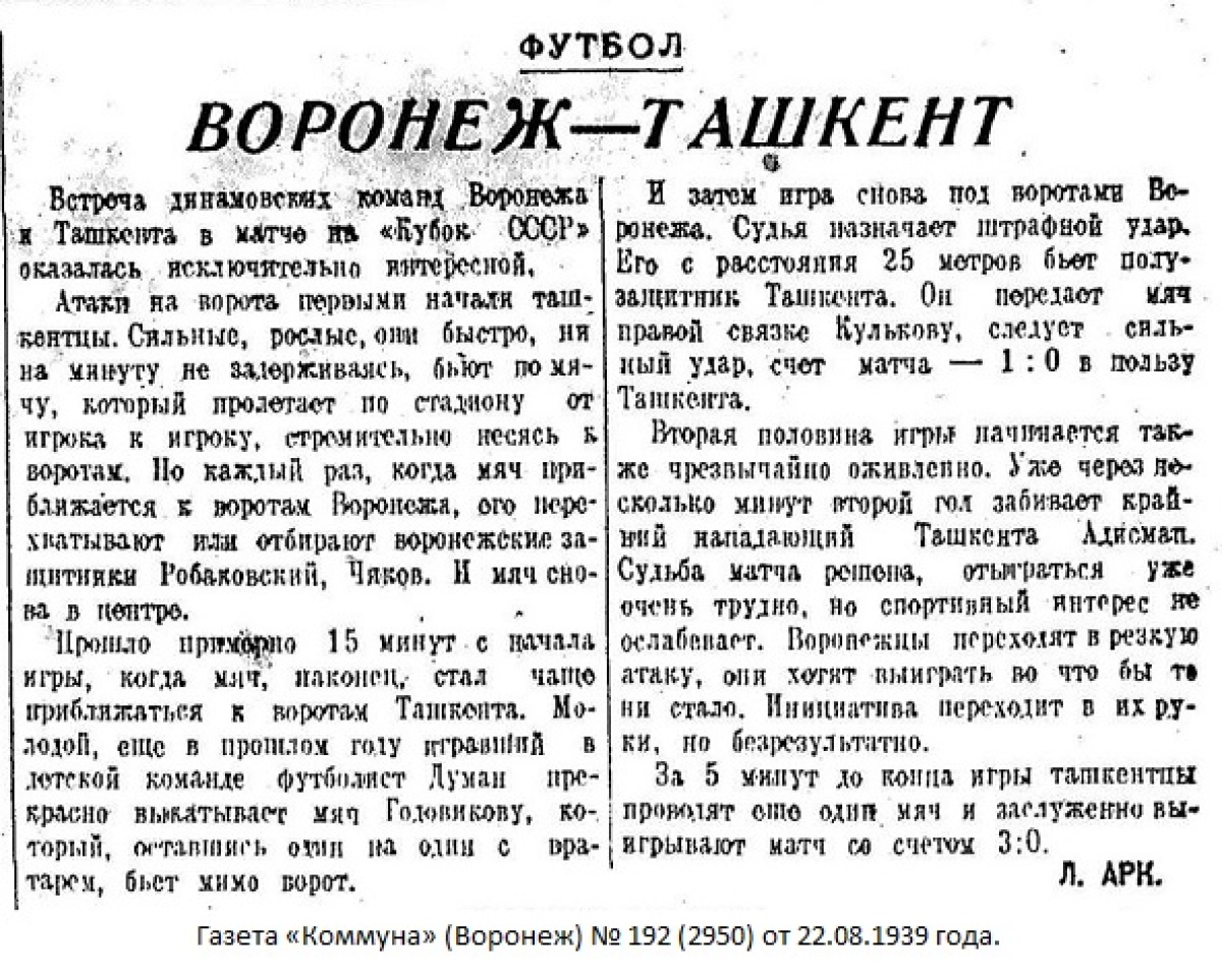 «Динамо» Воронеж - «Динамо» Ташкент - 0:3