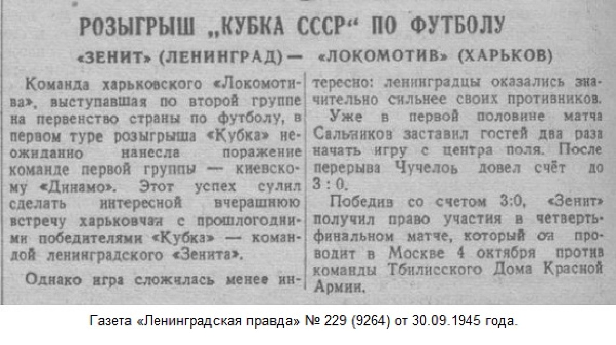 «Зенит» Ленинград - «Локомотив» Харьков - 3:0
