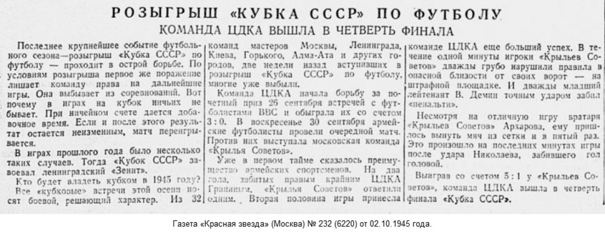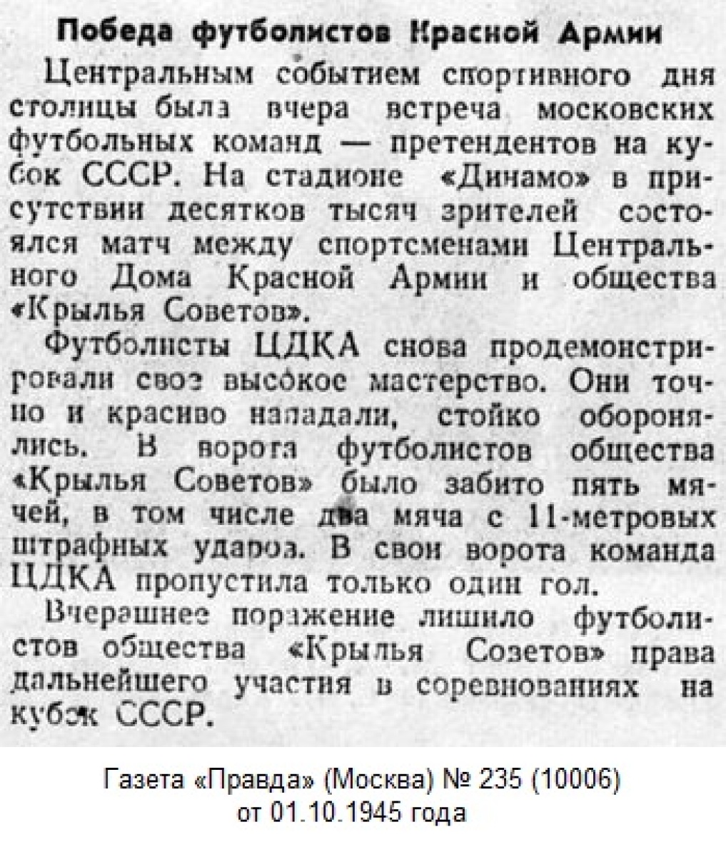 ЦДКА Москва - «Крылья Советов» Москва - 5:1