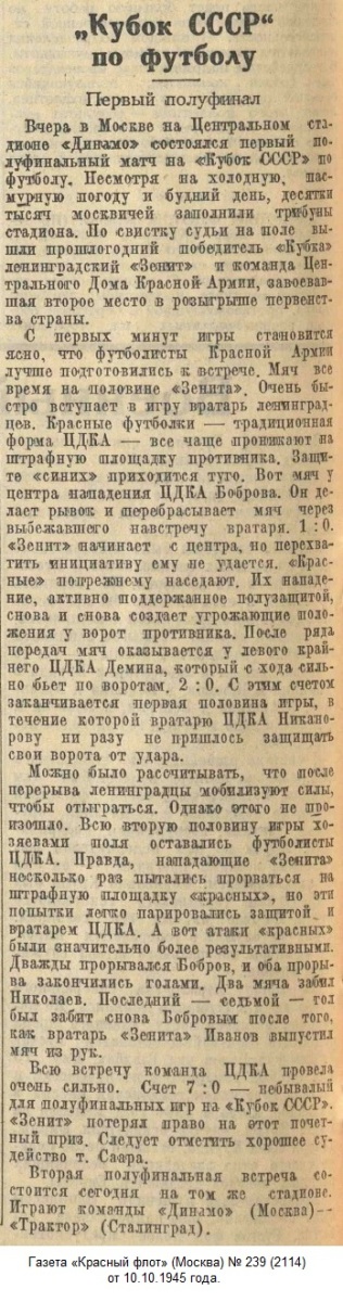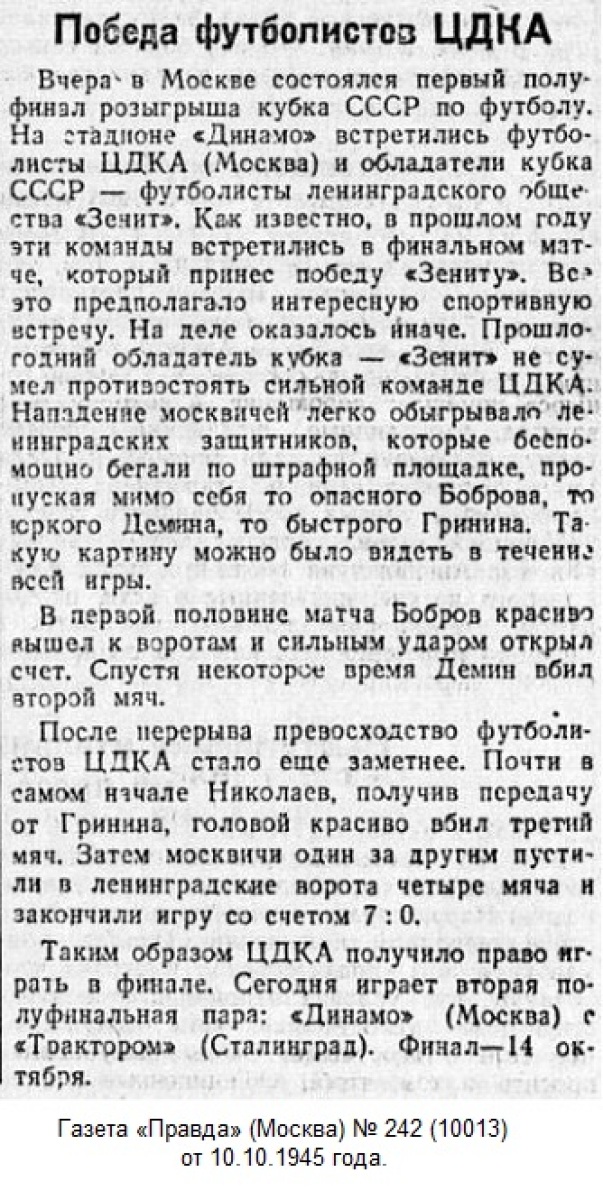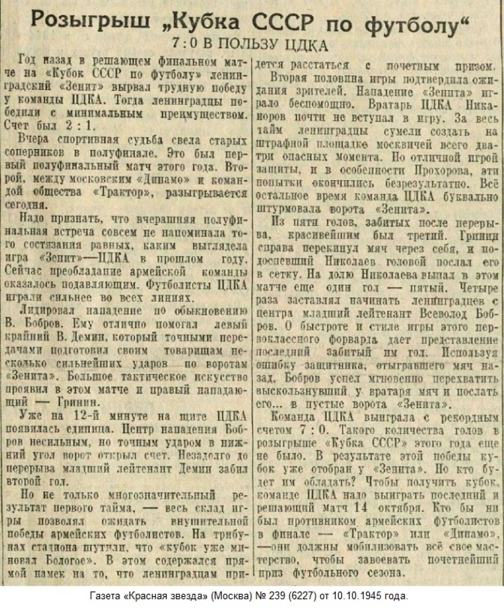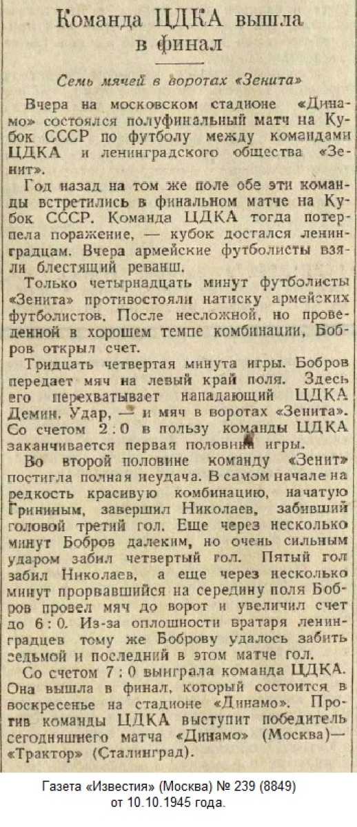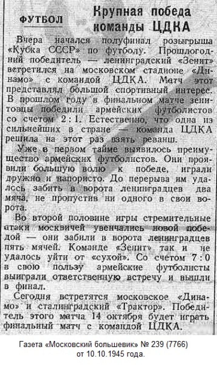 ЦДКА Москва - «Зенит» Ленинград - 7:0