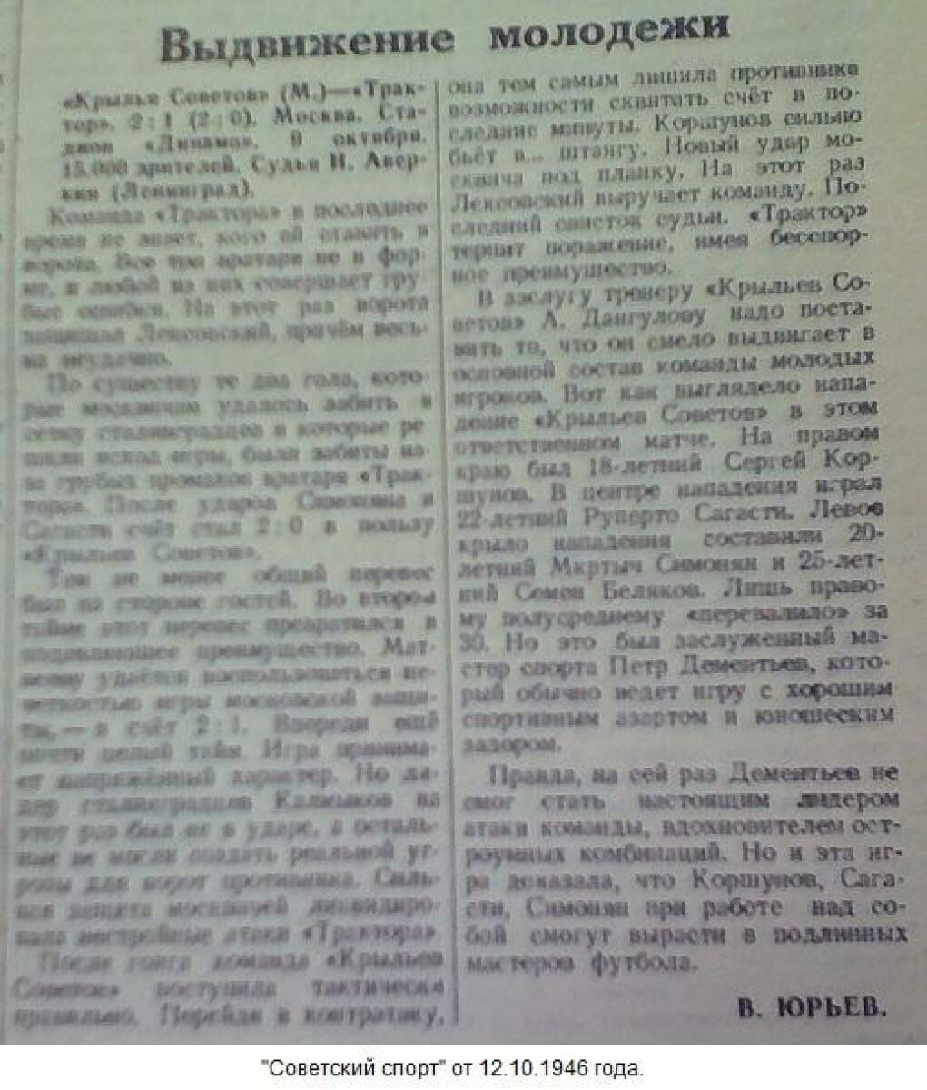«Крылья Советов» Москва - «Трактор» Сталинград - 2:1