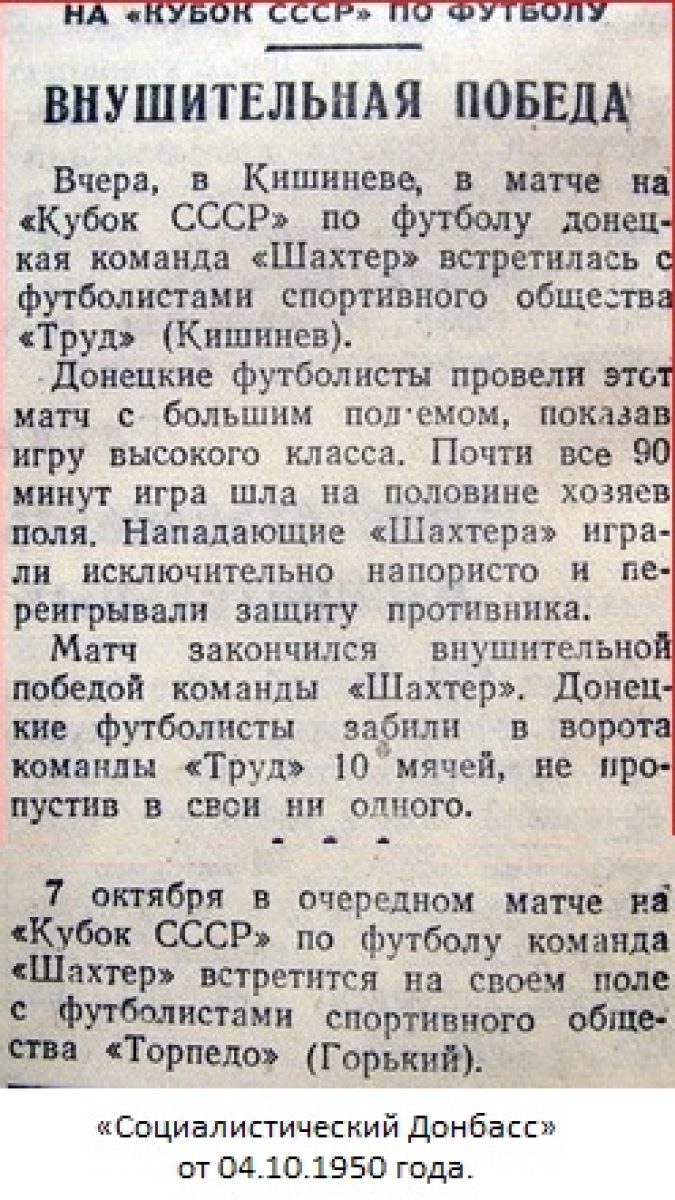 «Труд» Кишинёв - «Шахтёр» Сталино - 0:10
