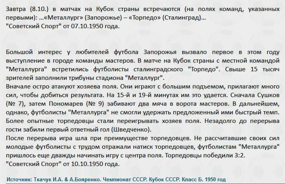 «Металлург» Запорожье - «Торпедо» Сталинград - 2:3