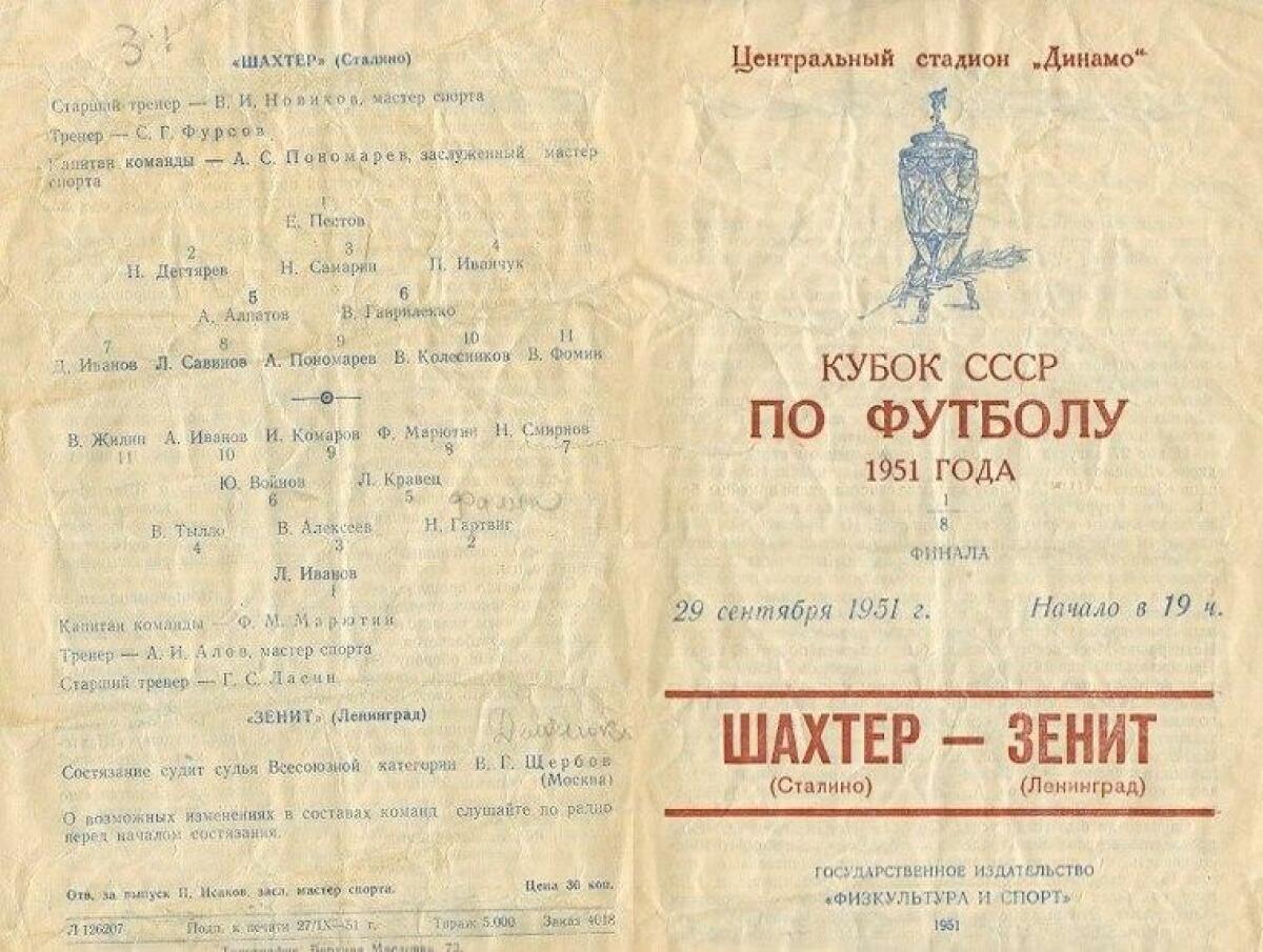 «Шахтёр» Сталино - «Зенит» Ленинград - 1:1