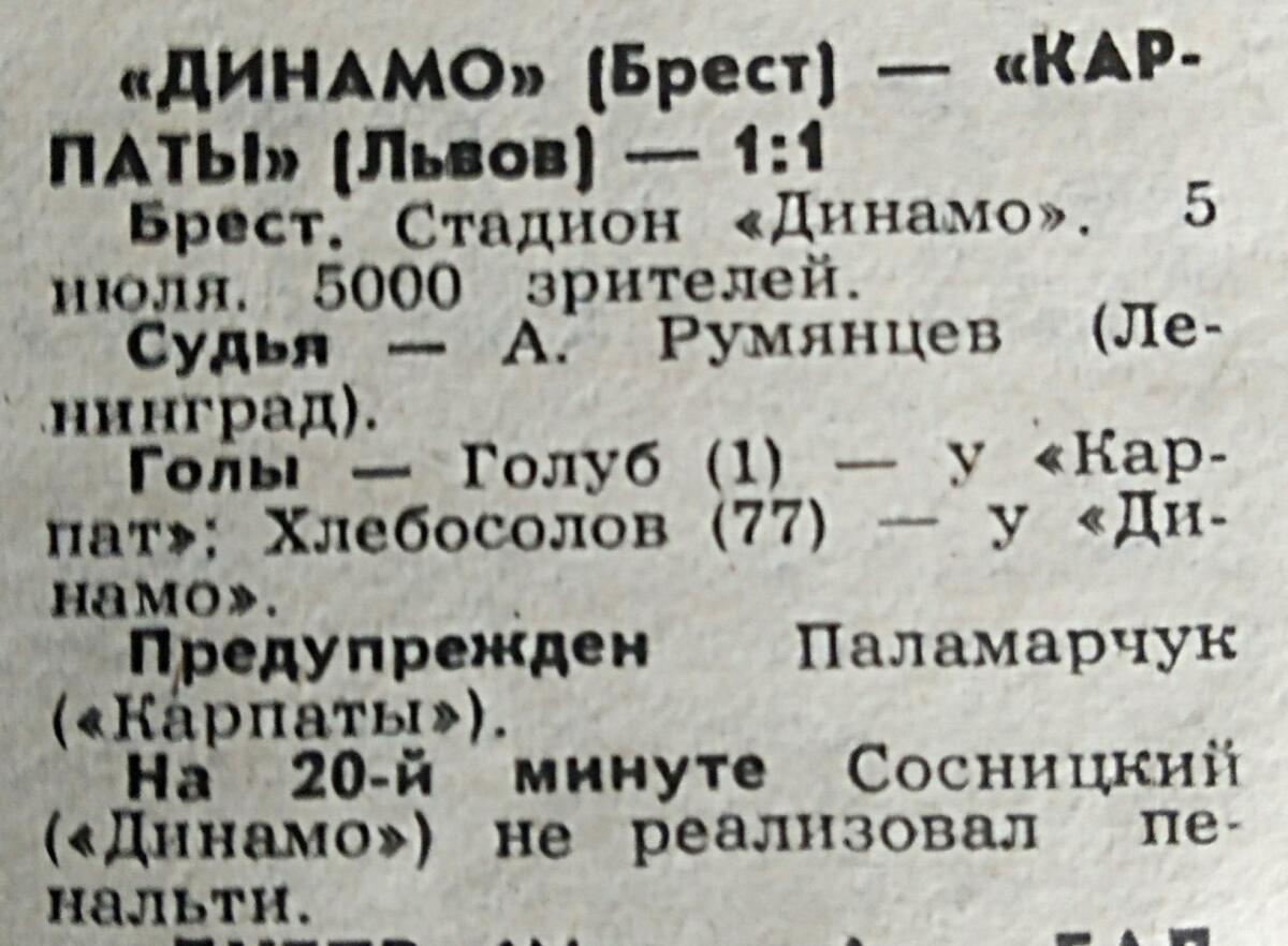 «Динамо» Брест - «Карпаты» Львов - 1:1