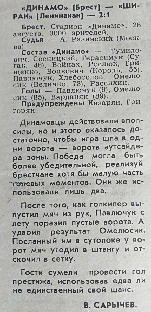 «Динамо» Брест - «Ширак» Ленинакан - 2:1
