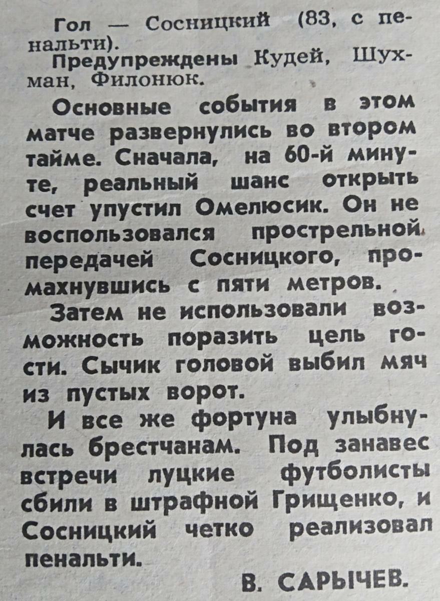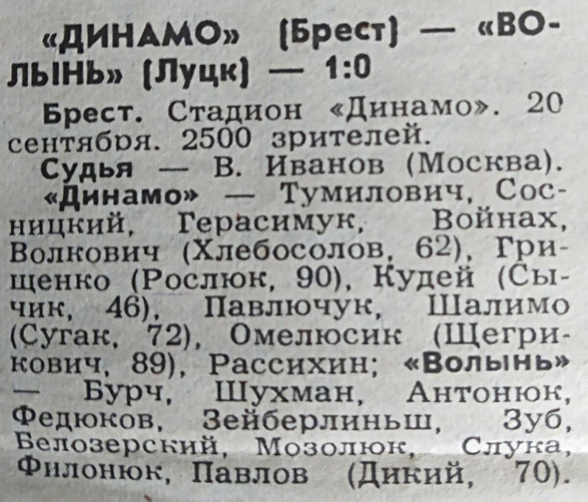 «Динамо» Брест - «Волынь» Луцк - 1:0