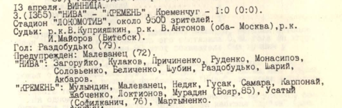 «Нива» Винница - «Кремень» Кременчуг - 1:0