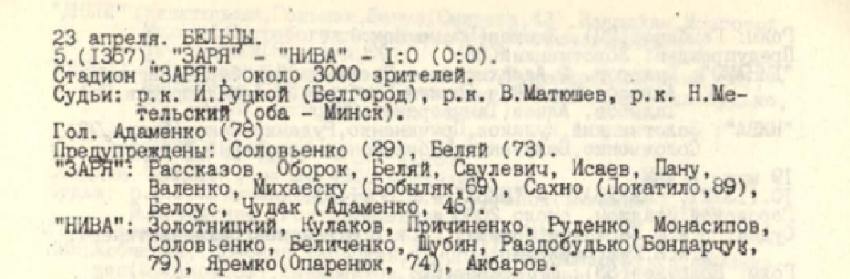 «Заря» Бельцы - «Нива» Винница - 1:0