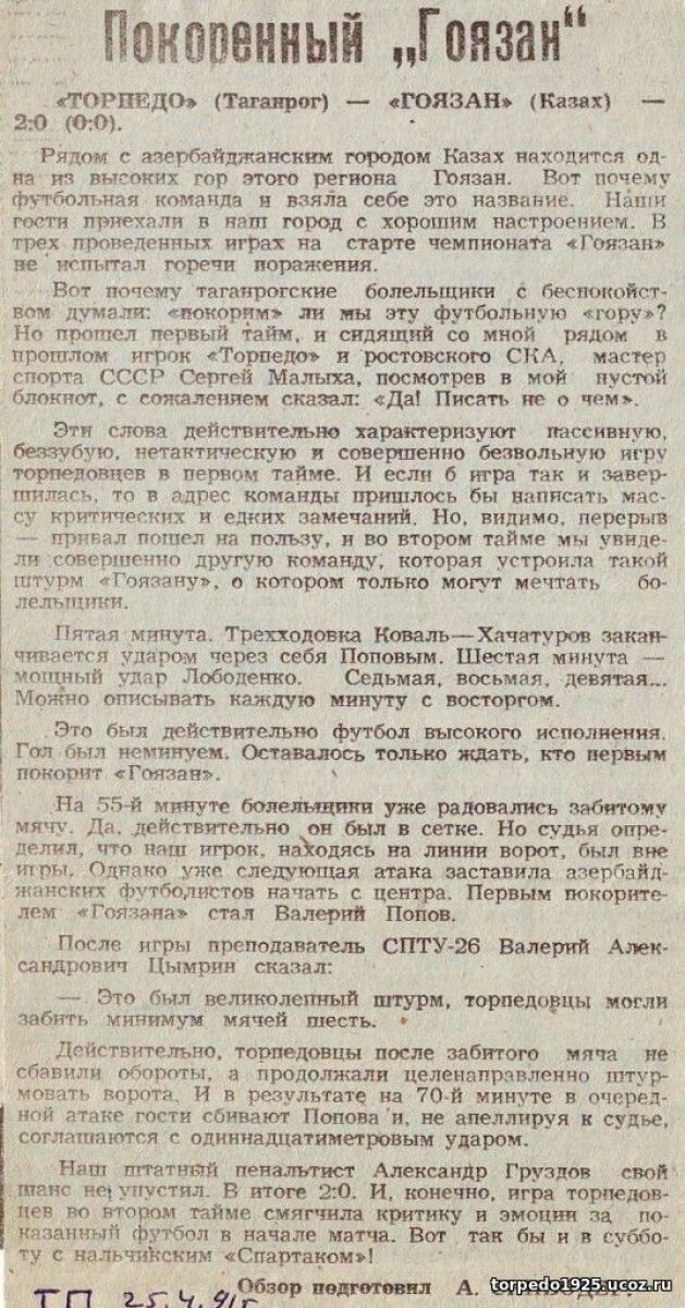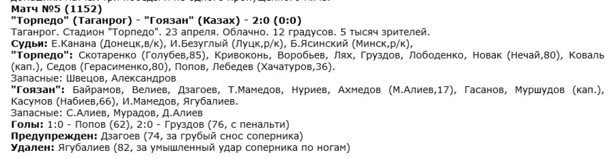 «Торпедо» Таганрог - «Гёязань» Казах - 2:0