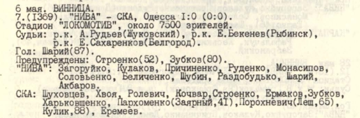 «Нива» Винница - СКА - 1:0