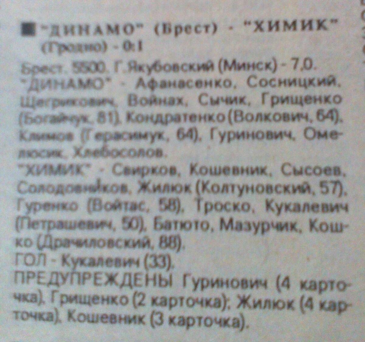 «Динамо» Брест - «Химик» Гродно - 0:1