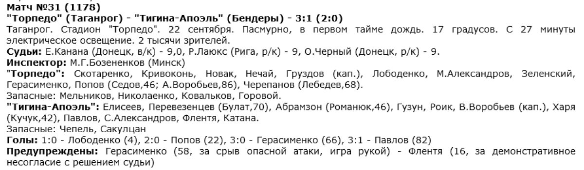 «Торпедо» Таганрог - «Тигина-Апоэль» Бендеры - 3:1
