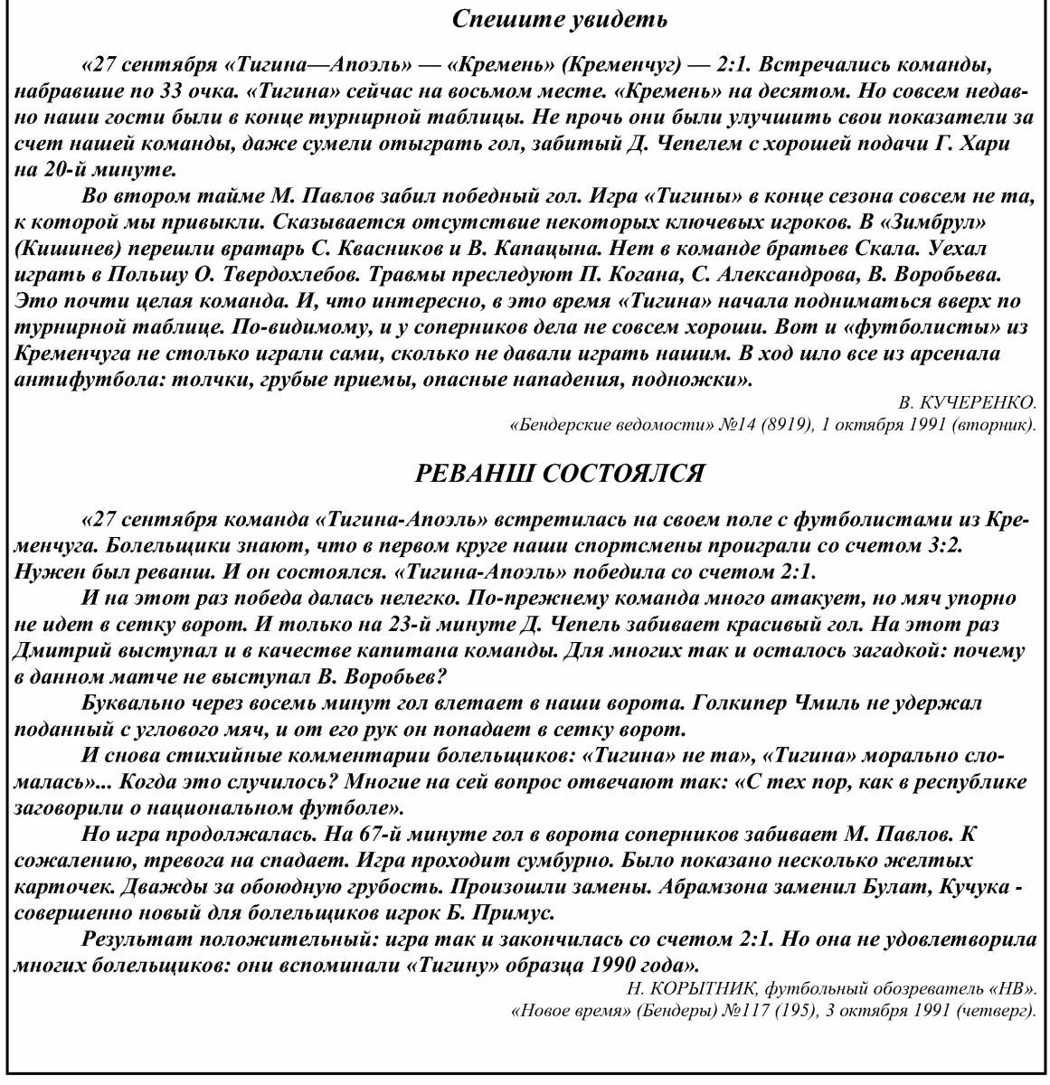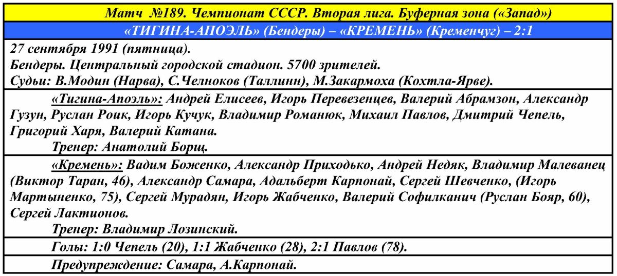 «Тигина-Апоэль» Бендеры - «Кремень» Кременчуг - 2:1