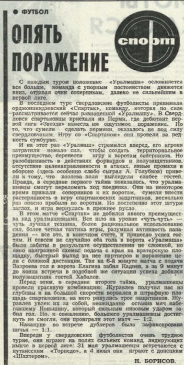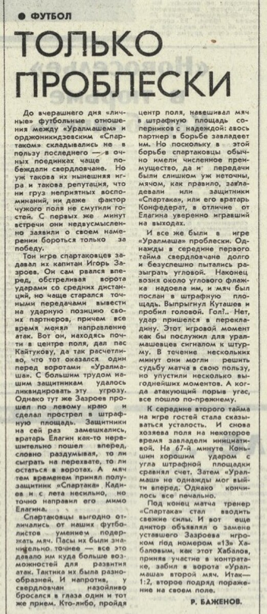 «Уралмаш» Свердловск - «Спартак» Орджоникидзе - 1:2