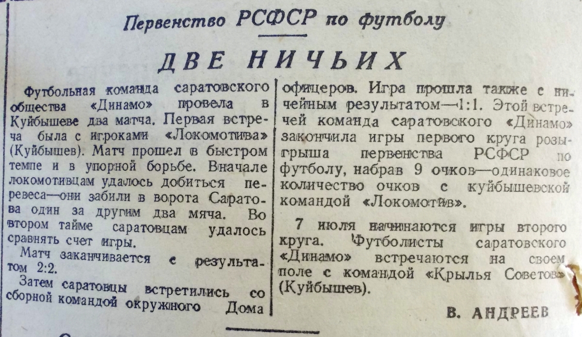 ДО Куйбышев - «Динамо» Саратов - 1:1
