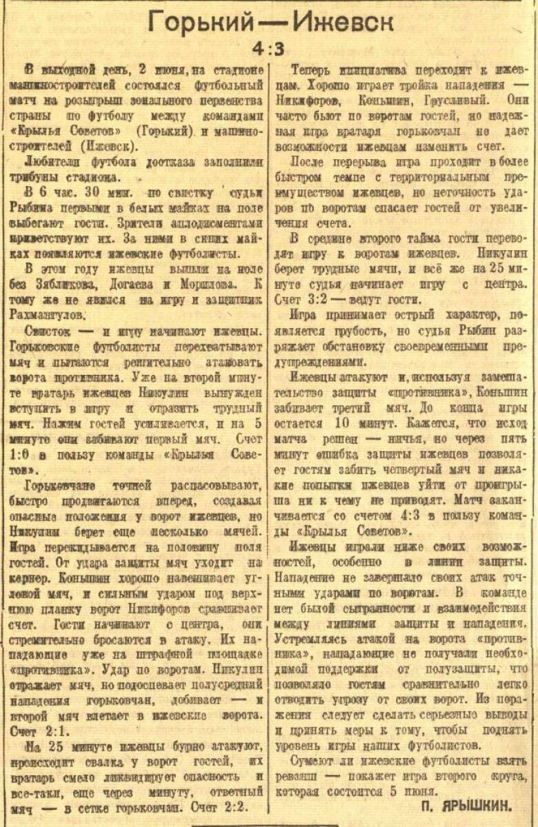 «Зенит» Ижевск - «Крылья Советов» Горький - 3:4