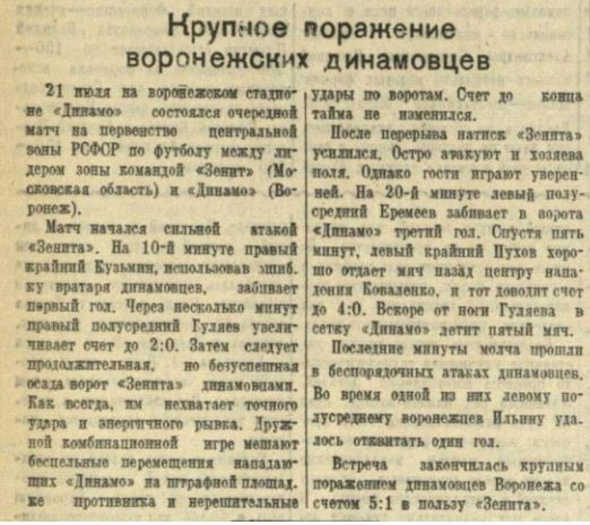 «Динамо» Воронеж - «Зенит» Калининград - 1:5