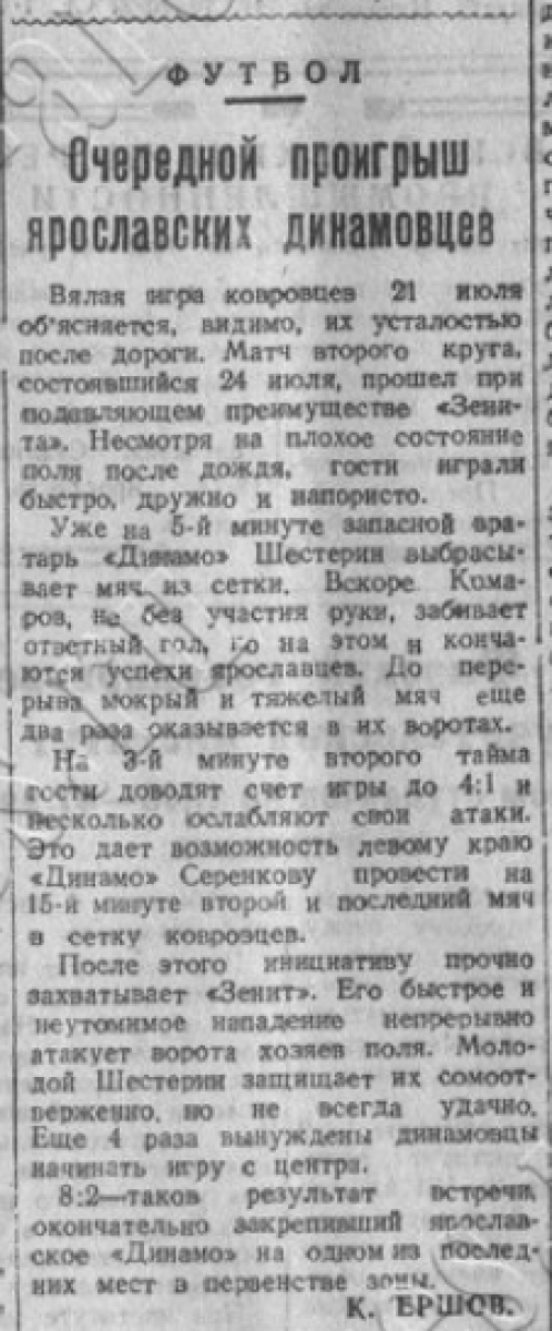 «Динамо» Ярославль - «Зенит» Ковров - 2:8