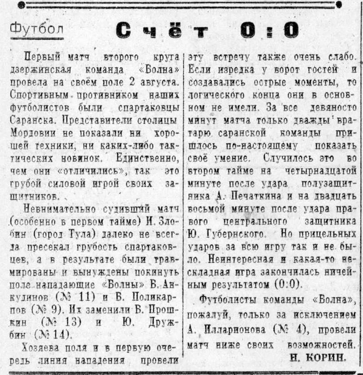 «Волна» Дзержинск - «Спартак» Саранск - 0:0