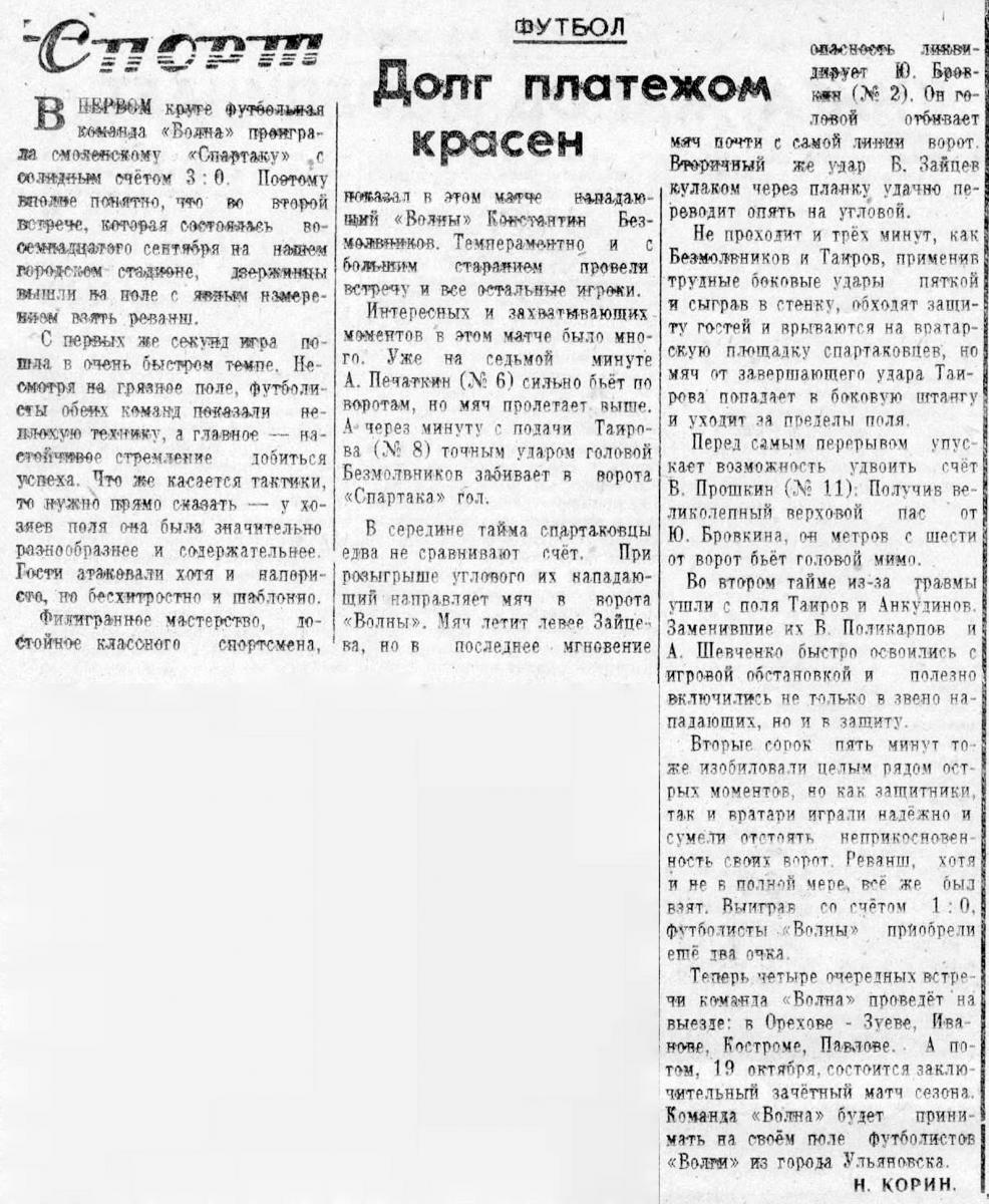 «Волна» Дзержинск - «Спартак» Смоленск - 1:0