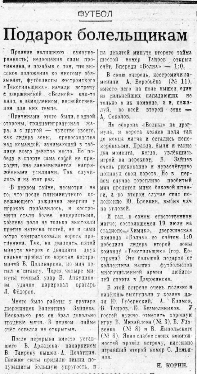 «Волна» Дзержинск - «Текстильщик» Кострома - 1:0