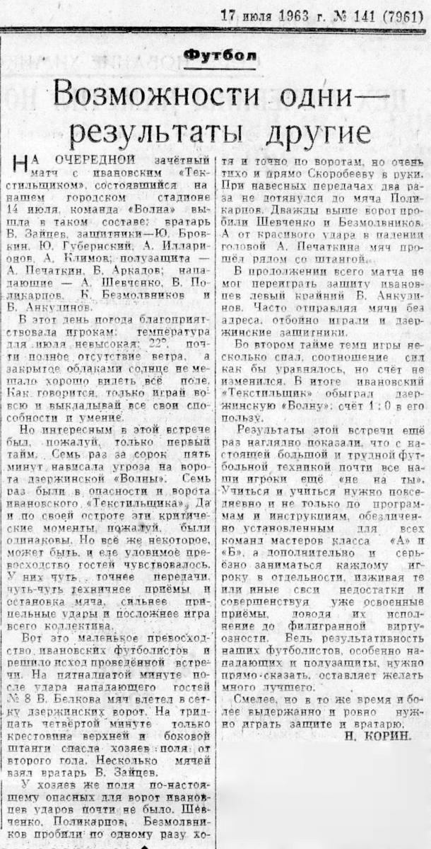 «Волна» Дзержинск - «Текстильщик» Иваново - 0:1