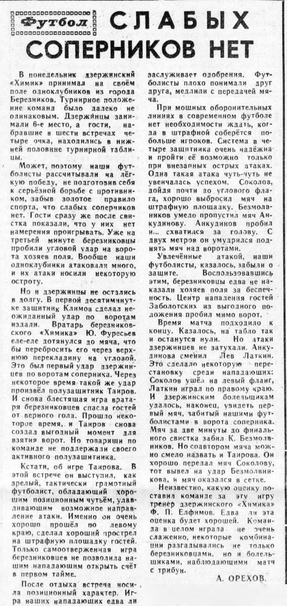 «Химик» Дзержинск - «Химик» Березники - 1:0