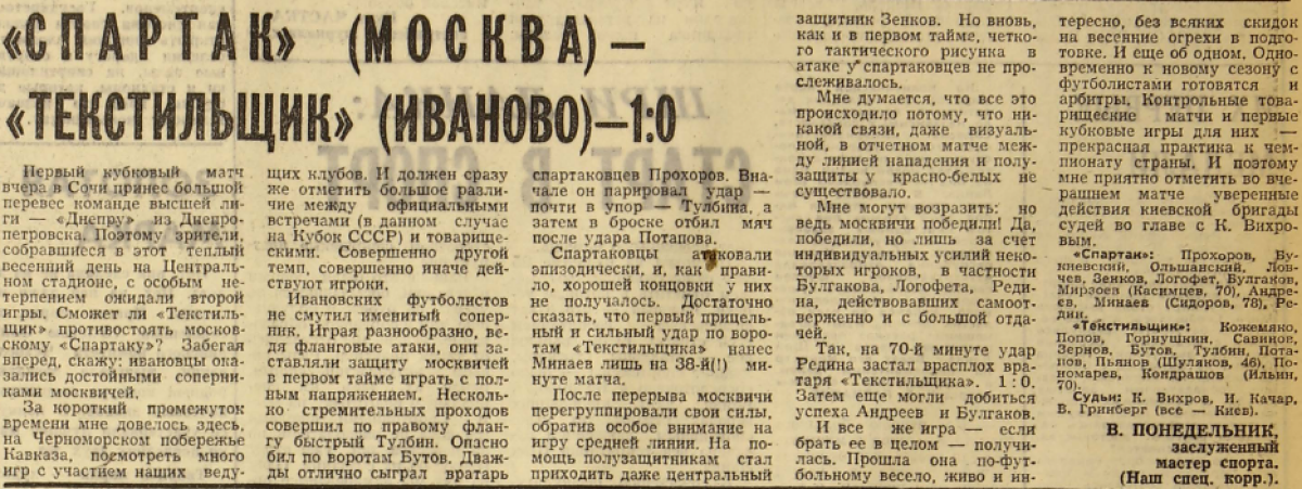 «Текстильщик» Иваново - «Спартак» Москва - 0:1
