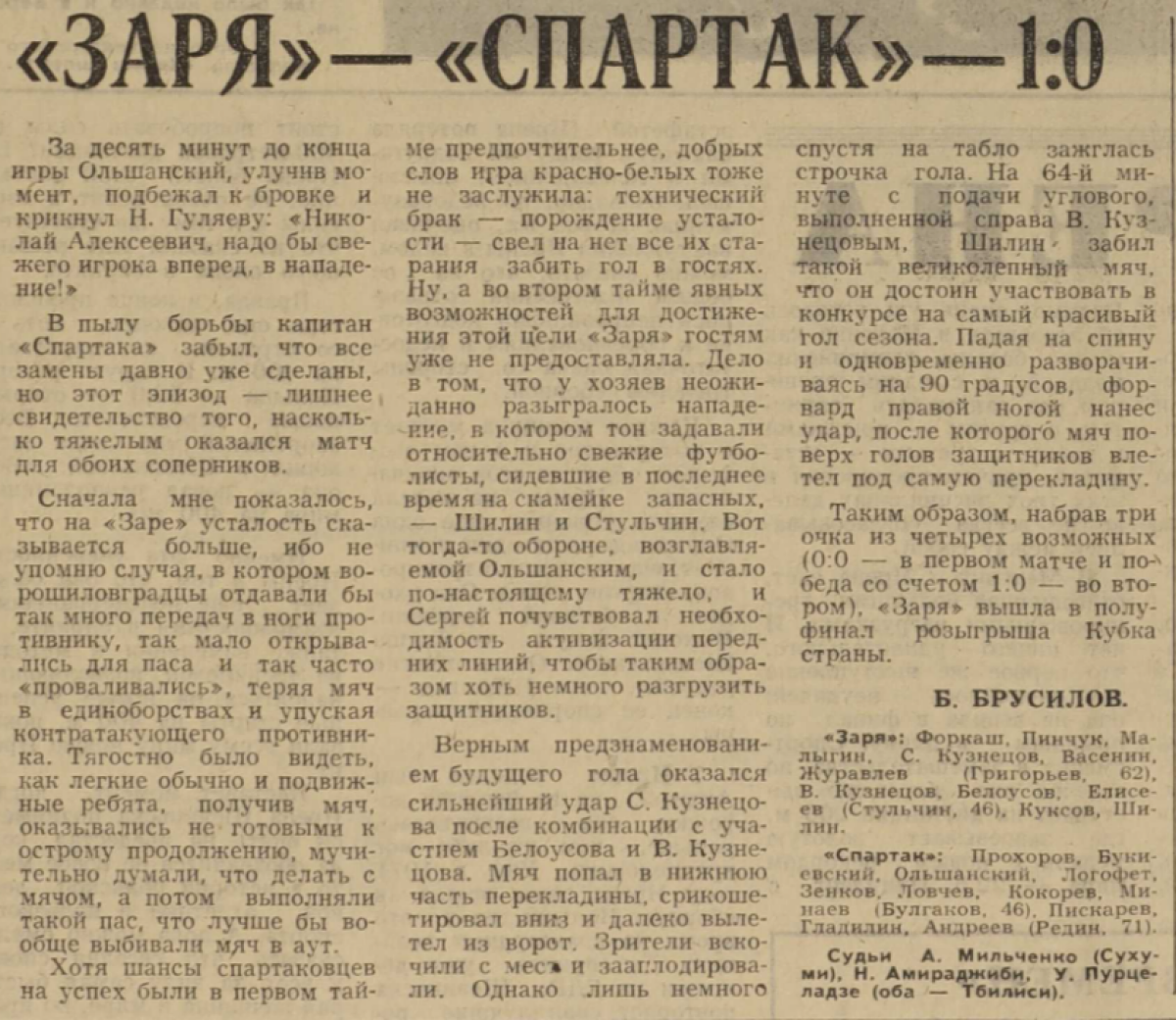 «Заря» Ворошиловград - «Спартак» Москва - 1:0