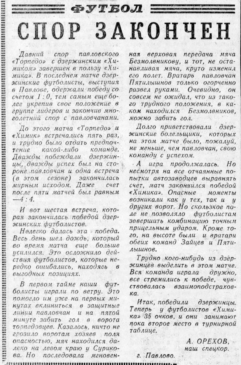 «Торпедо» Павлово - «Химик» Дзержинск - 0:1