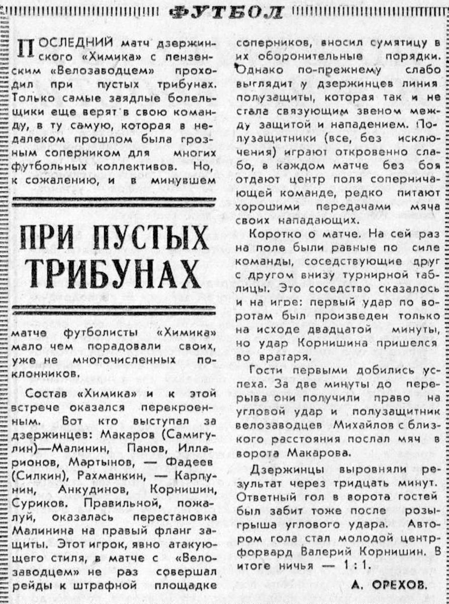 «Химик» Дзержинск - «Велозаводец» Пенза - 1:1