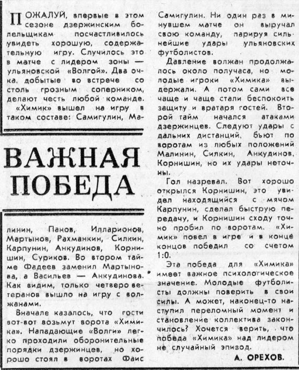 «Химик» Дзержинск - «Волга» Ульяновск - 1:0