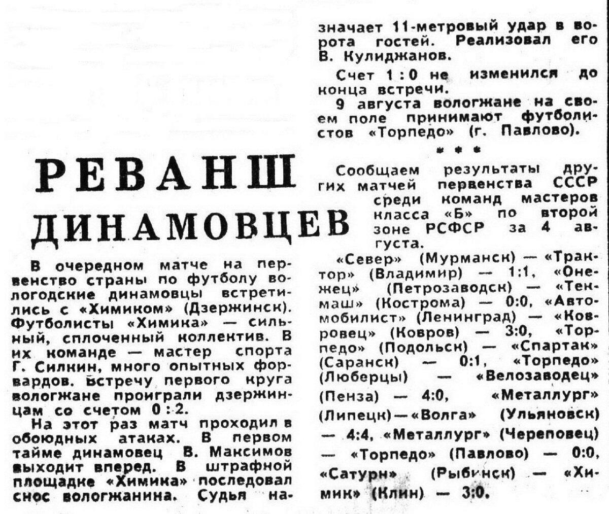 «Динамо» Вологда - «Химик» Дзержинск - 1:0