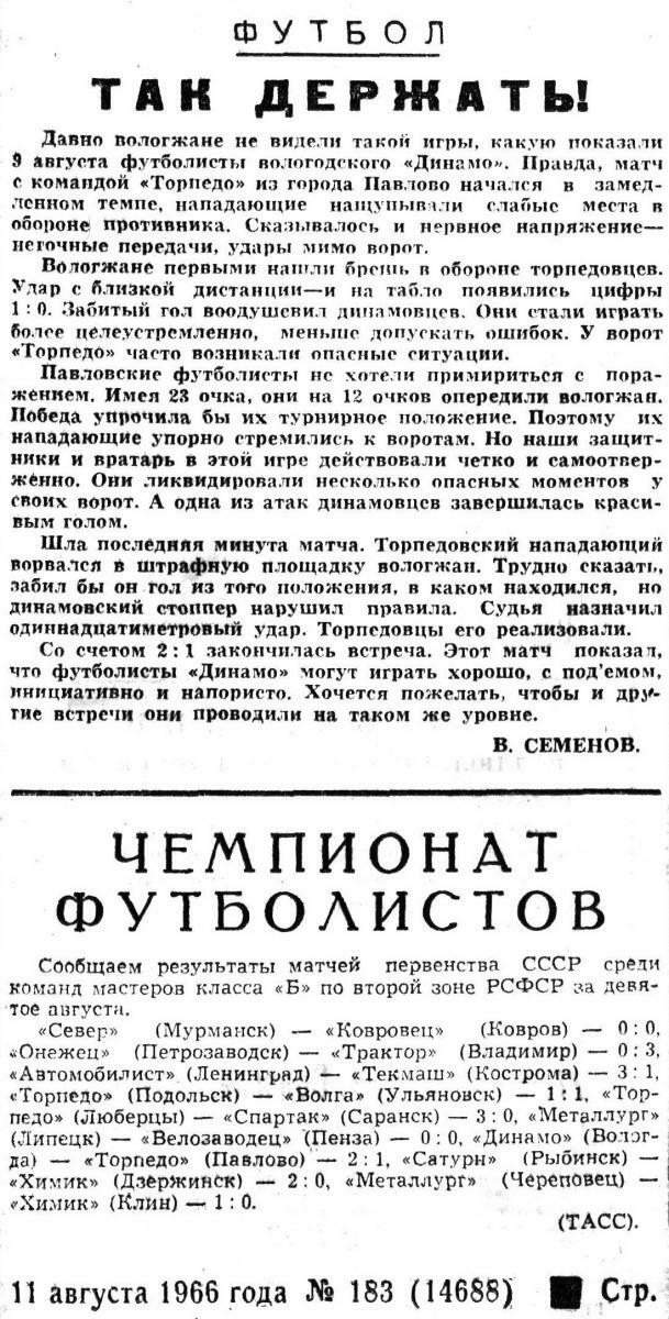 «Динамо» Вологда - «Торпедо» Павлово - 2:1