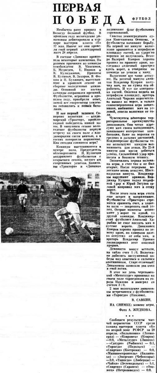 «Динамо» Вологда - «Трактор» Владимир - 1:0
