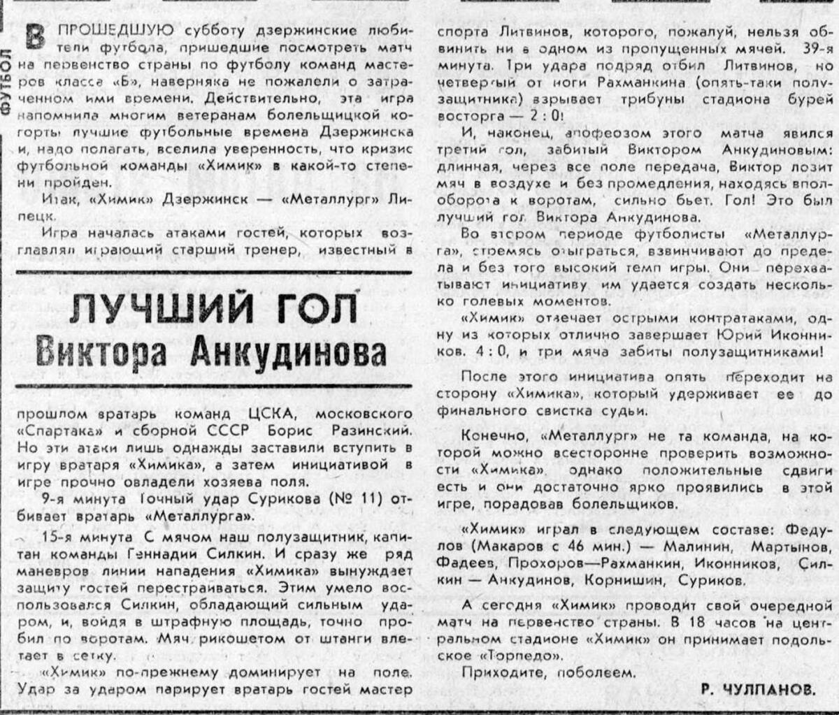 «Химик» Дзержинск - «Металлург» Липецк - 4:0