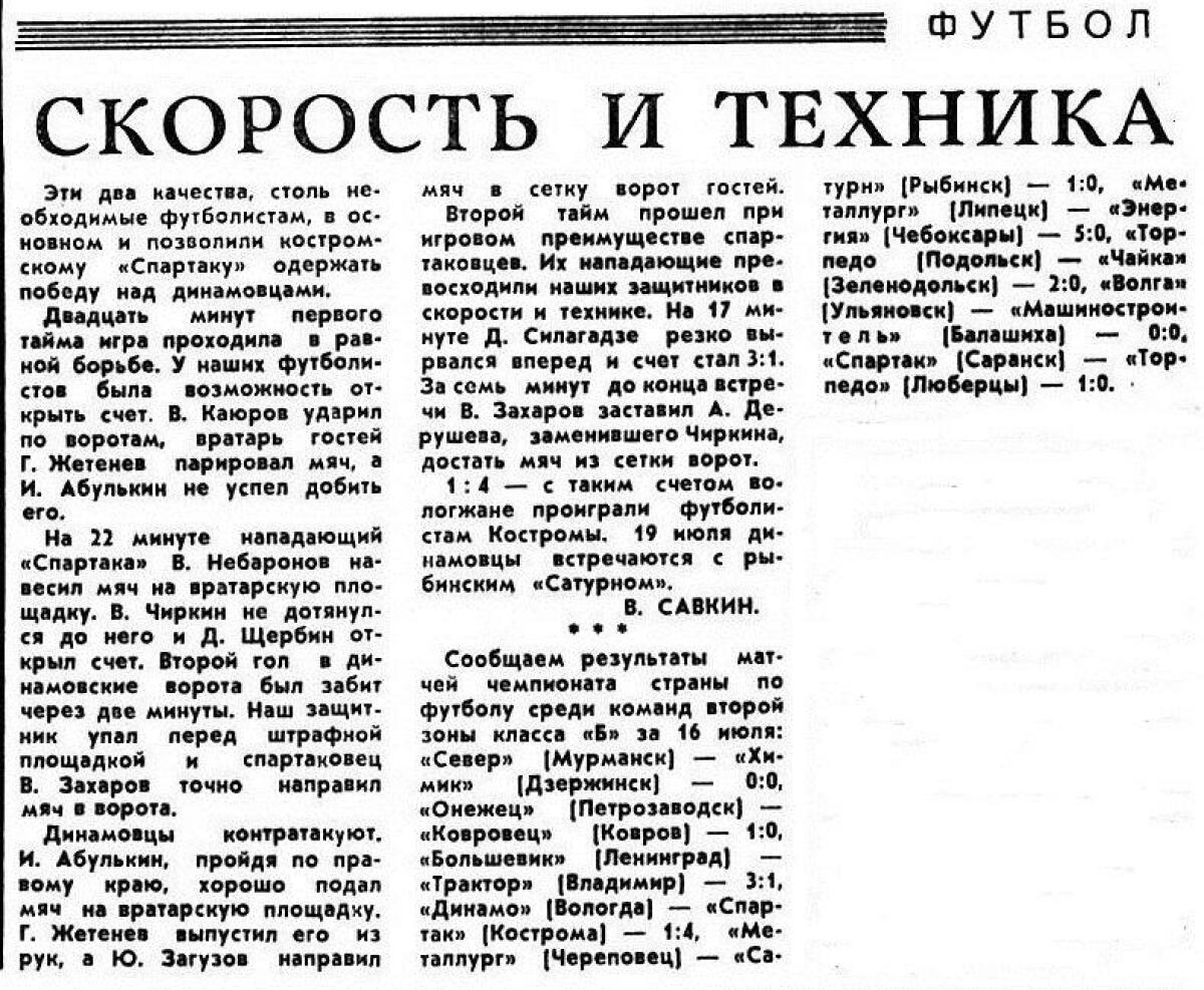 «Динамо» Вологда - «Спартак» Кострома - 1:4