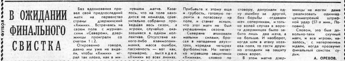 «Химик» Дзержинск - «Север» Мурманск - 0:1