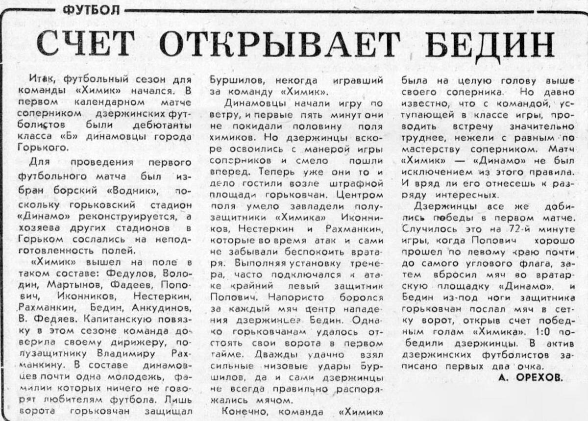 «Динамо» Горький - «Химик» Дзержинск - 0:1