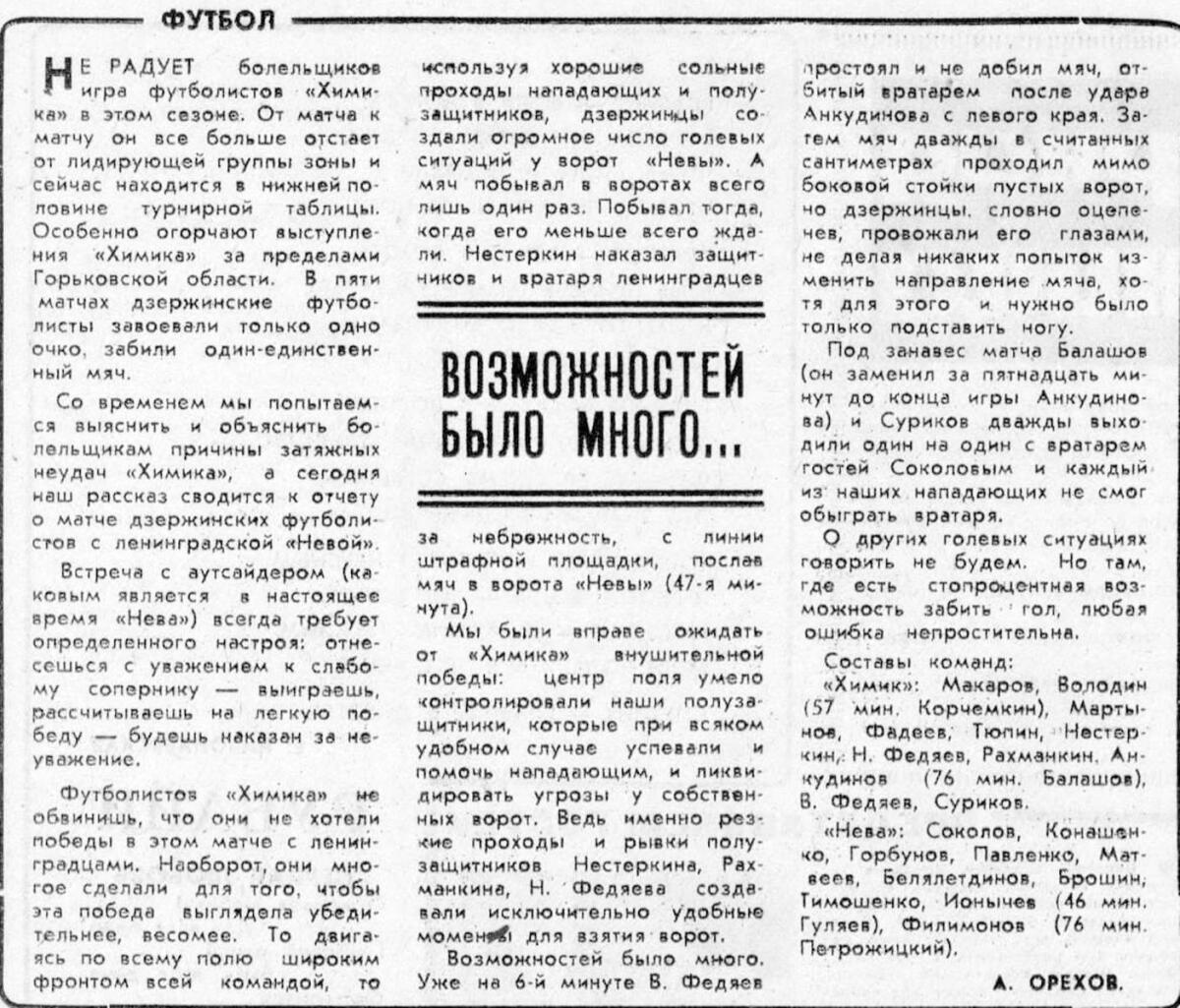 «Химик» Дзержинск - «Нева» Ленинград - 1:0