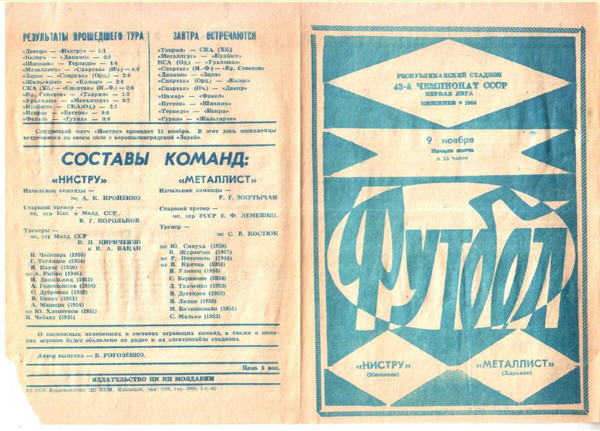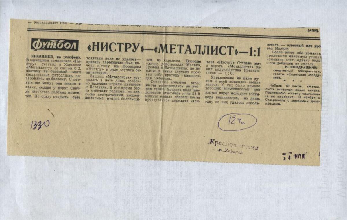 «Нистру» Кишинёв - «Металлист» Харьков - 1:1