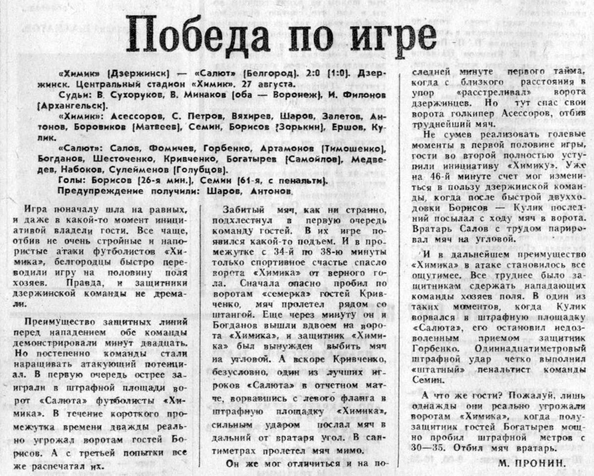 «Химик» Дзержинск - «Салют» Белгород - 2:0