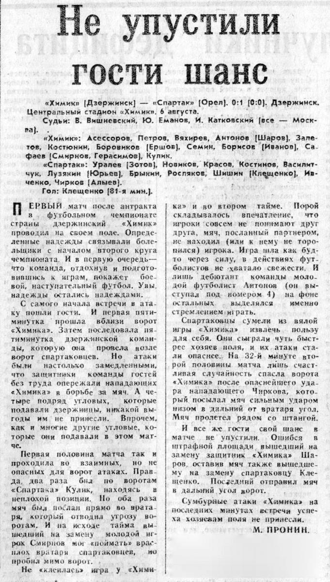 «Химик» Дзержинск - «Спартак» Орёл - 0:1