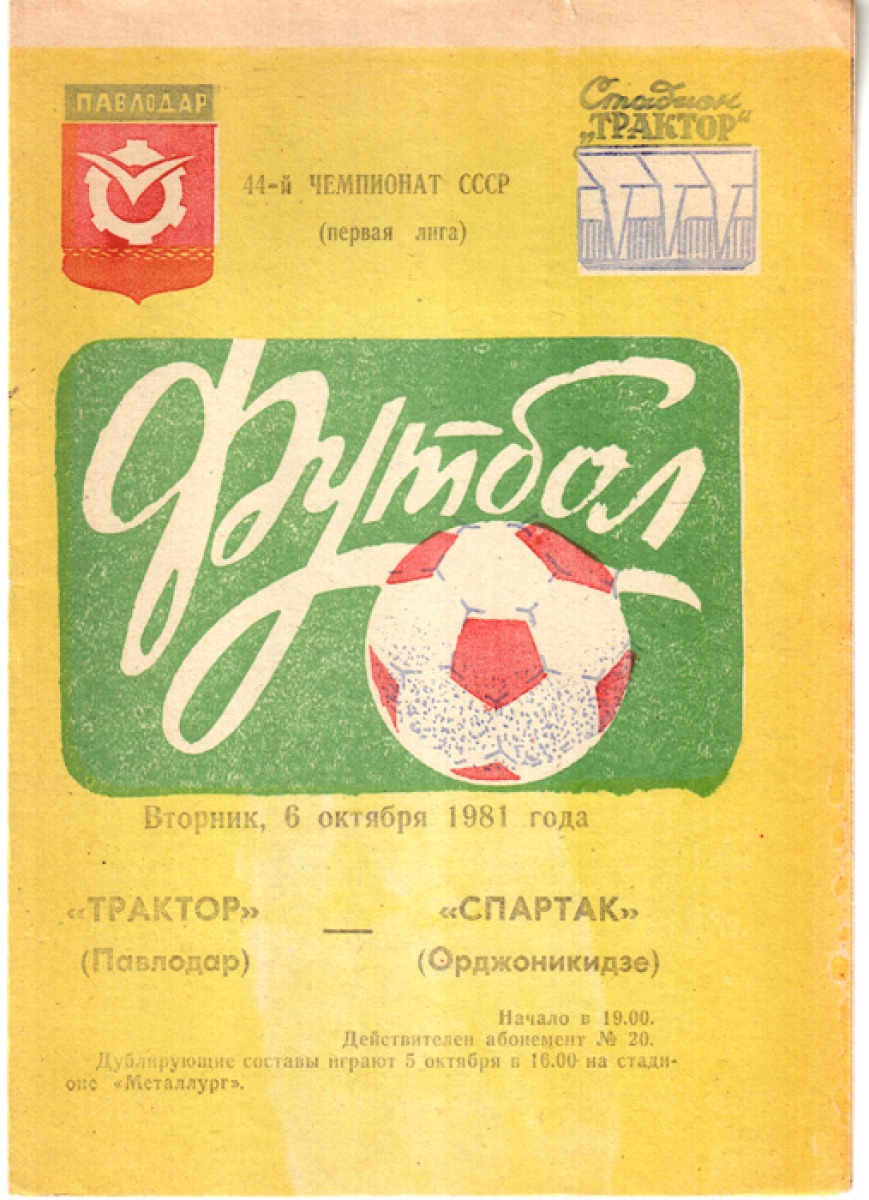 «Трактор» Павлодар - «Спартак» Орджоникидзе - 2:1
