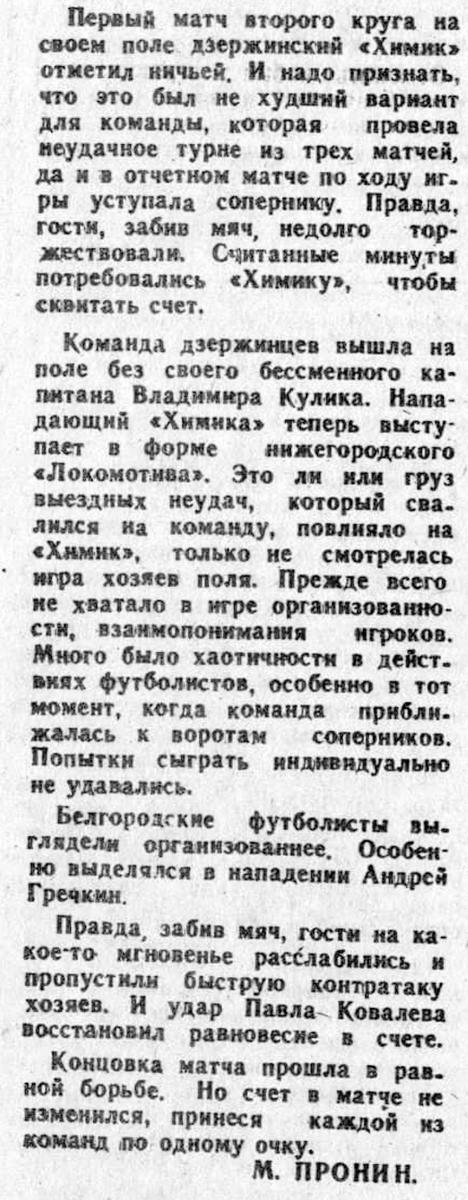 «Химик» Дзержинск - «Ритм» Белгород - 1:1