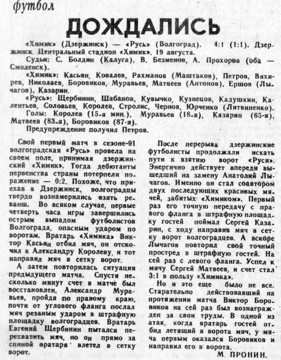 «Химик» Дзержинск - «Русь» Волгоград - 4:1