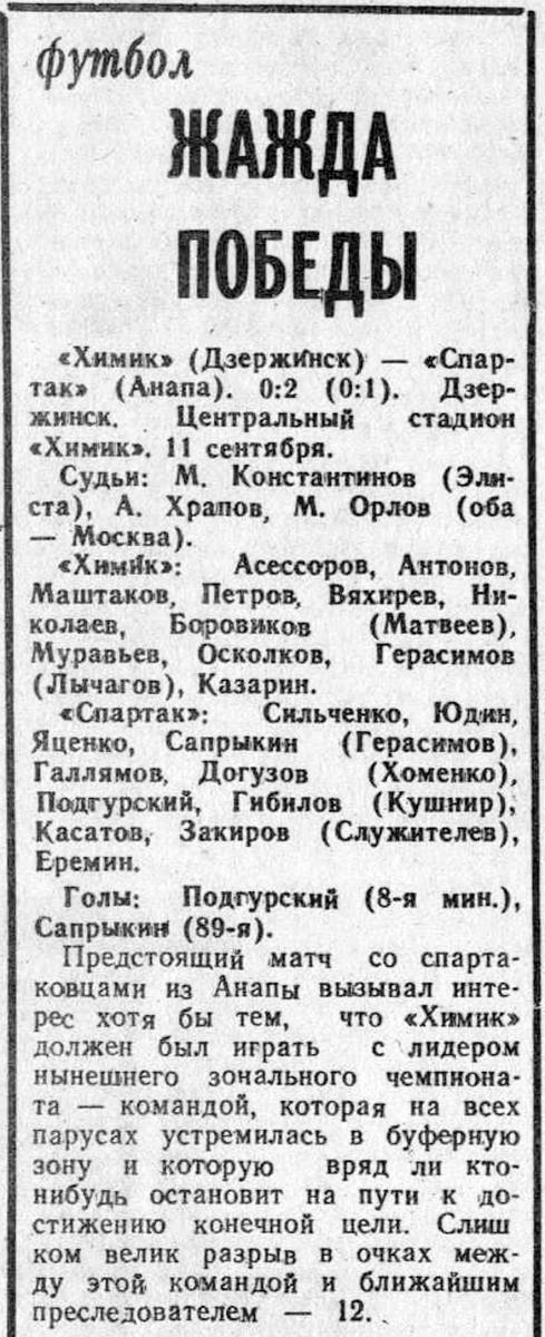 «Химик» Дзержинск - «Спартак» Анапа - 0:2